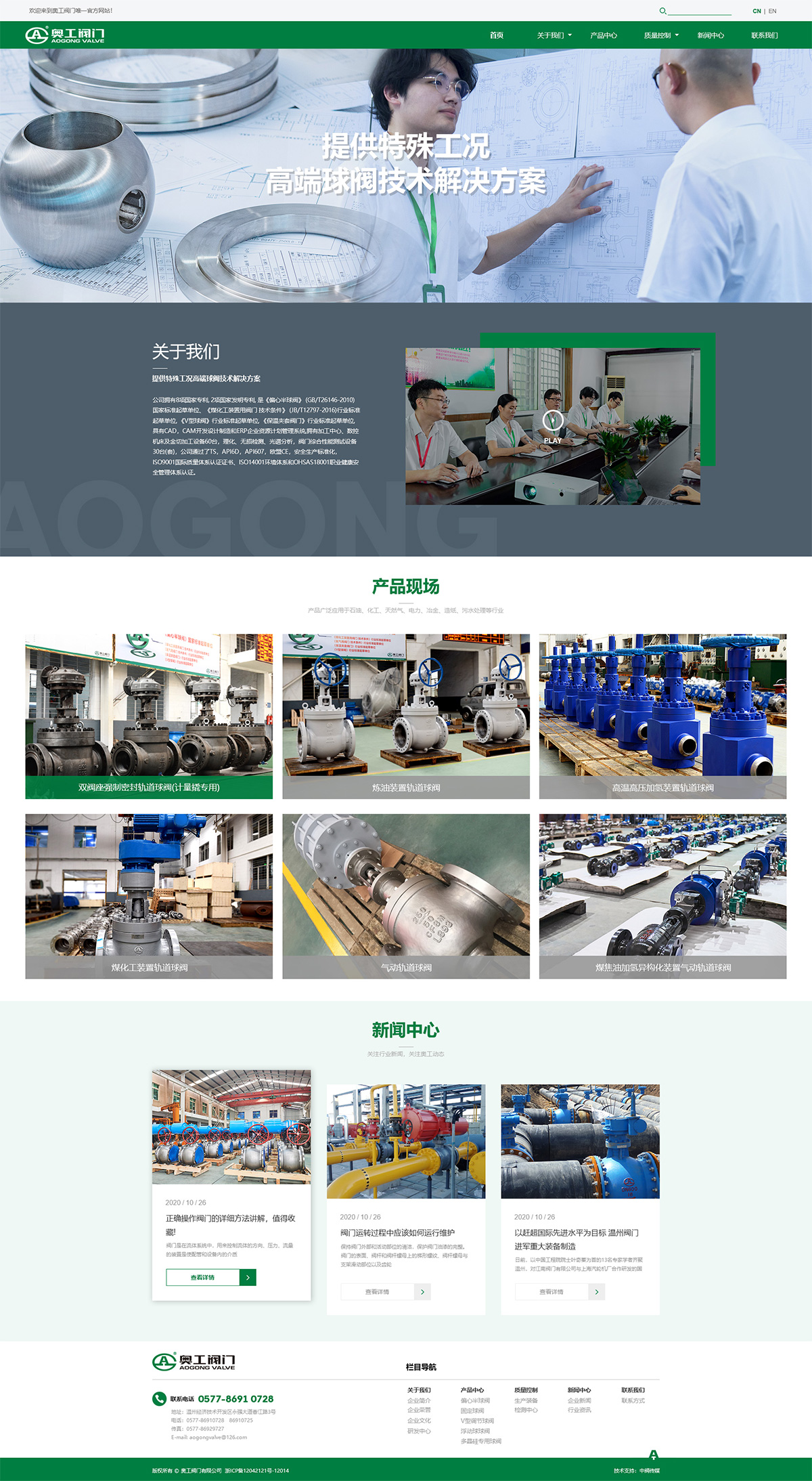 中(zhong)國(guo)(guo)·奧(ao)工閥門有限公(gong)司(si)是一(yi)家(jia)集研發、制造、銷售、服務為(wei)一(yi)體專業生(sheng)產金屬硬密封(feng)球(qiu)閥的(de)科技(ji)型企業。公(gong)司(si)擁有8項國(guo)(guo)家(jia)專利,有2項獲得國(guo)(guo)家(jia)發明專利,是偏心半(ban)球(qiu)閥國(guo)(guo)家(jia)標準(GB/T26146-2010)起草單位。