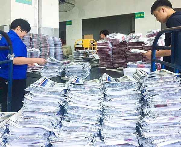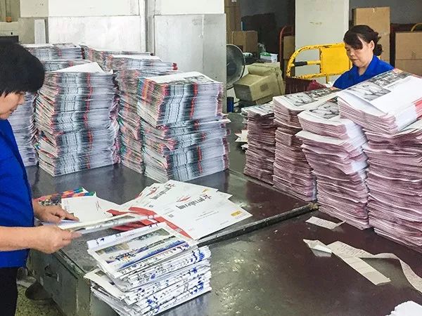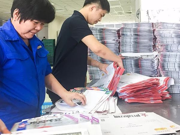 工作人員在為月刊進行包裝 ↓