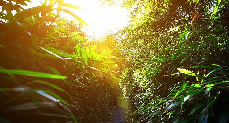 如下圖所示(shi),通(tong)過逆光拍攝使綠葉更加通(tong)透。